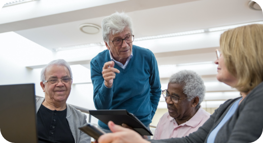 シニア世代は社会的な孤立や身体的な制約によって社会参加が難しくなることがありますが、eスポーツコミュニティではシニア世代同士が交流し、一緒に競技を楽しみながら、 オンライン・オフラインを問わない社会参加を促進します。また、eスポーツコミュニティを通じて、シニア世代同士がコミュニケーションを取り、社会的なつながりを築くことを目指します。
